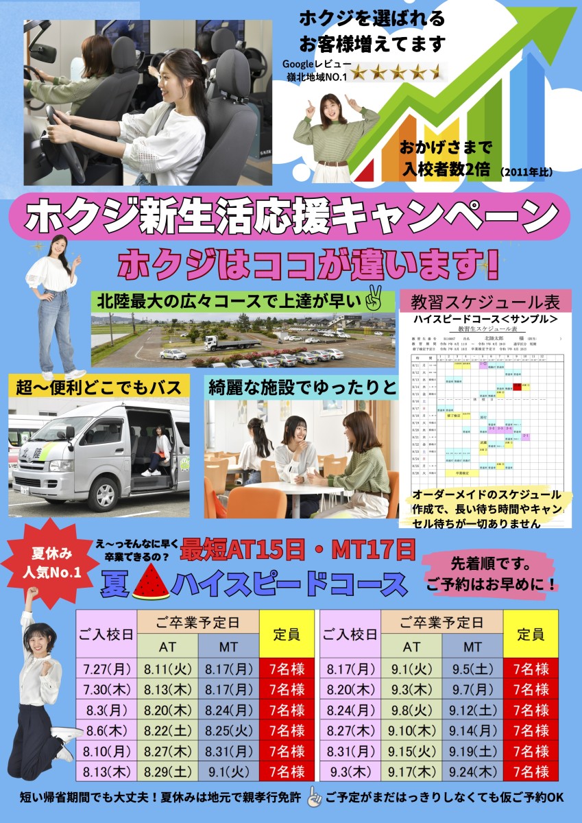 大人気!ホクジ新生活免許応援キャンペーン実施中です!!