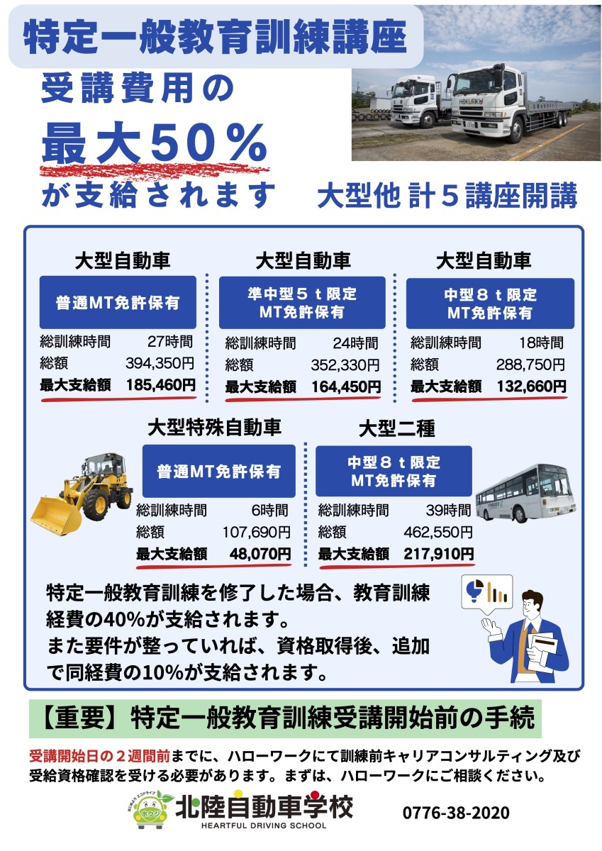 費用の50%支給!ホクジの特定一般教育訓練